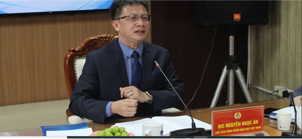 Đồng chí Nguyễn Ngọc Ân - Chủ tịch CĐGD Việt Nam phát biểu tại Chương trình ký kết thỏa thuận hợp tác
